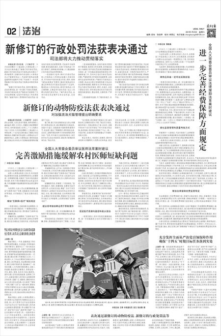 “新修订的行政处罚法,坚持问题导向,总结改革经验,进一步完善了行政处罚制度,为各级行政执法机关严格依法行政提供了充分的法律依据,也是对行政执法工作的更高要求。”赵振华表示,贯彻落实行政处罚法,是各级行政机关的重要职责。司法部作为统筹协调、指导监督各地区、各部门行政执法工作的主管部门,将积极采取措施,大力推动新修订的行政处罚法的贯彻落实。