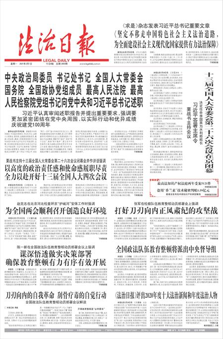 《法治日报》评出2020年度十大法治新闻和年度法治人物