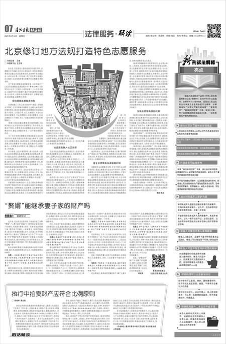为了促进志愿服务高质量发展,北京市修订了《北京市志愿服务促进条例》(以下简称《条例》)。《条例》经北京市十五届人大常委会第二十七次会议通过,自2021年3月1日起施行。修订后的《条例》共6章50条,分为总则、志愿者和志愿服务组织、志愿服务活动、促进措施、法律责任、附则。