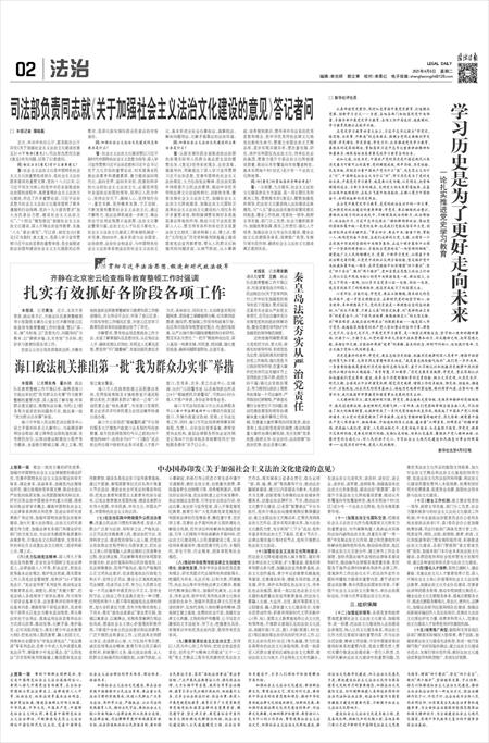 司法部负责同志就《关于加强社会主义法治文化建设的意见》答记者问