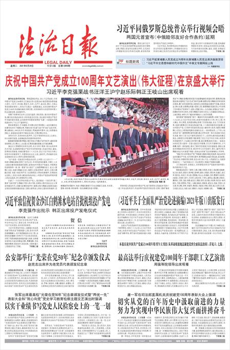 本报庆祝中国共产党成立100周年特刊今天刊出《从革命根据地法制建设到全面依法治国》