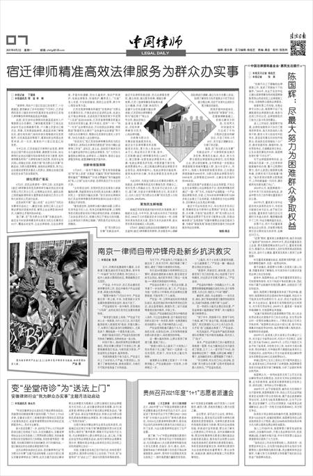 合肥市律协刑事法律专业委员会组织委员,向瑶海区社区矫正对象开展“醉酒驾驶刑责分析及其犯罪心理研究”集中教育;铜陵市司法局经开区分局、市法律援助中心联合律所进企业、进工地,开展法治宣传和法律服务活动;池州市律师协会理事来到乡村,帮助村委会审查山场承包合同以及村民之间的房屋转让协议……