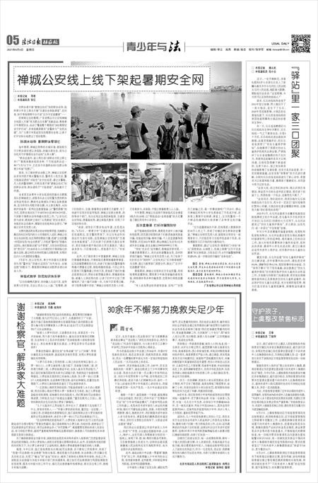 在刚刚过去的暑期,广东省佛山市公安局禅城分局深入开展“我为群众办实事”实践活动,聚焦青少年暑期安全,启动了覆盖整个暑假的“2021暑期安全守护行动”,多举措做深做实“全警参与”“全民共建”,为广大青少年筑起坚实的暑期安全网,让孩子们平安快乐地度过了美好假期。