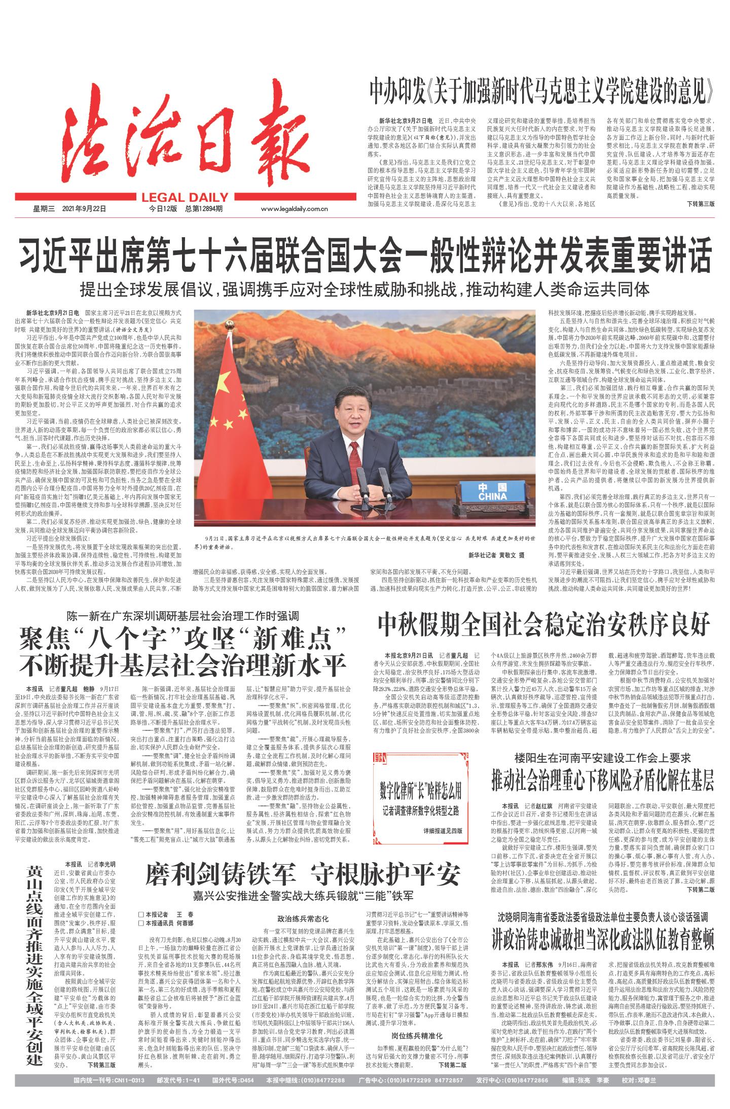 中秋假期全国社会稳定治安秩序良好 (2021年09月22日) |