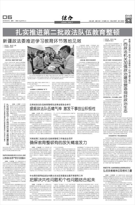 本报讯 记者范天娇 近日,安徽省委常委、政法委书记,省政法队伍教育整顿领导小组副组长、办公室主任张韵声主持召开安徽省政法队伍教育整顿领导小组办公室第五次主任会议。张韵声强调,推动第二批教育整顿走深走实,要突出彻查重点、政策引导,牢牢把握省级政法机关是政治机关、领导机关、表率机关的属性和定位,以更高标准和更严要求,在深化自查自纠、加强纪法联动和聚焦查办重点方面下足功夫,确保查纠整改不走过场。
