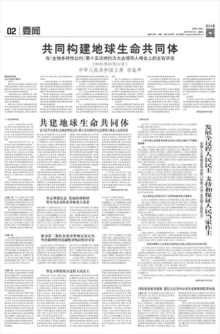 在《生物多样性公约》第十五次缔约方大会领导人峰会上的主旨讲话