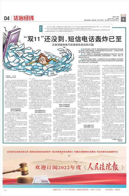在今年“双11”临近前,为营造良好的购物法治环境,《法治日报》记者就短信电话促销、折扣满减优惠规则、直播带货等社会热点话题进行调查采访,从今天起推出系列报道,敬请关注。