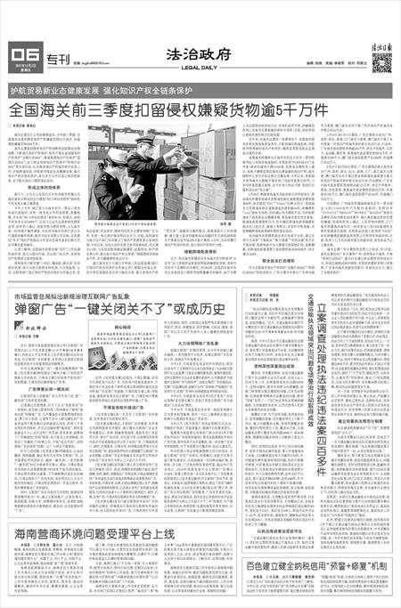 全国海关前三季度扣留侵权嫌疑货物逾5千万件