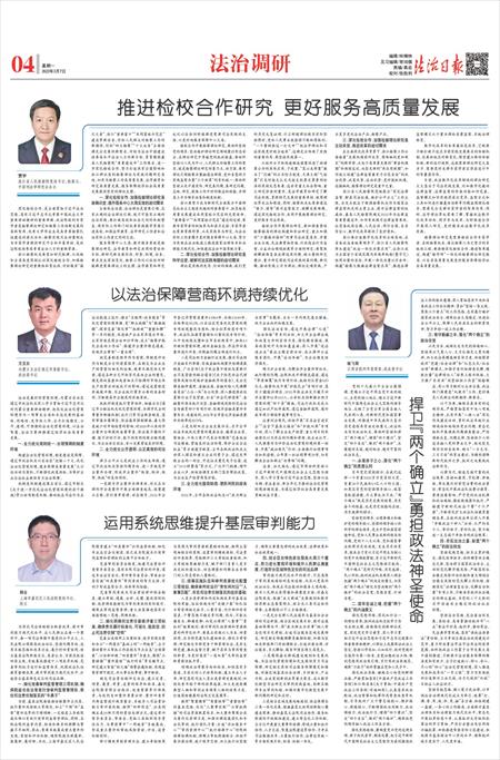 二是围绕嘉定新城建设规划和发展战略,为法治化营商环境和民生提供有力司法保障。研究制定具体司法服务保障意见和措施,对接区域基层社会治理、乡村振兴、产业升级、企业家创新创业等重点需求。设立数字化转型司法研究及审判实践基地,创新互联网专业审判机制,加强对数字化转型发展中新问题的研究和应对。