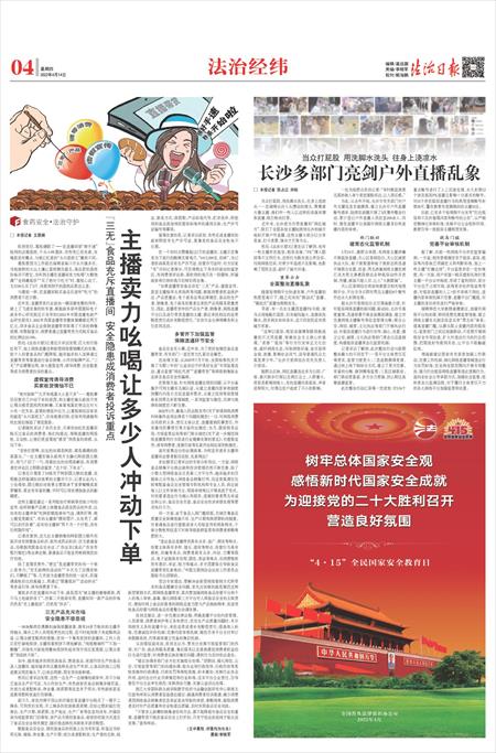 “不管多么新潮的销售途径和方法,都不能降低对食品安全的重视。直播带货不能在食品安全上打折扣,只有守住法治底线才能长远发展。”盘和林说。