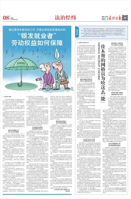 多位专家近日接受《法治日报》记者采访时提出,随着我国老龄化程度的加深,“银发就业者”势必越来越多,他们的劳动权益亟须通过制度予以保障。