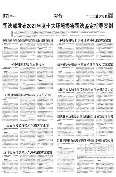 司法部发布2021年度十大环境损害司法鉴定指导案例