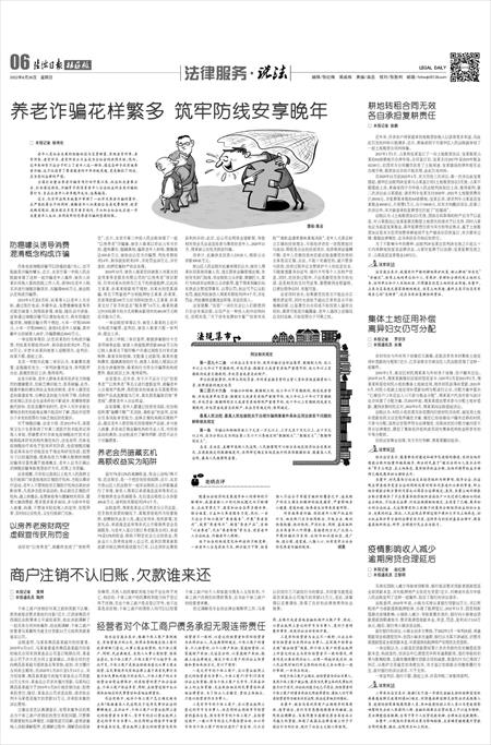 随着社会经济的发展进步和人均寿命的不断增加,我国老龄人口的比例也随之而不断增长。在此背景之下,国家和社会各界多措并举、综合施策,日益加大养老服务力度。然而,一些不法分子却以提供“养老服务”、开展“养老医疗”、投资“养老项目”、销售“养老产品”、宣称“以房养老”、代办“养老保险”等为名,侵害老年人合法权益,诈骗老年人钱财。