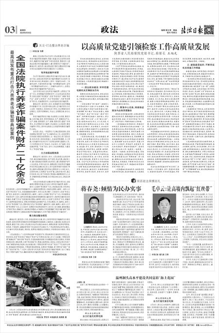 三是加强和改进党员队伍教育管理。发挥思想政治优势,严格党员教育管理监督,端正政绩观、进步观,多比吃苦奉献、多比工作业绩,始终保持积极向上、奋发有为的工作激情,强化关键时刻豁得出、冲得上的责任担当,弘扬“勤快严实精细廉”工作作风,涵养团结、进取、专业、至善的机关风尚。贯彻执行新时代政法干警“十个严禁”,教育广大党员以更高标准、更严要求树立表率示范,引领全体检察人员严守思想“红线”和行为“底线”。深化暖警爱警惠警工作,持续开展“为基层办实事”“为干警解难题”活动,最大限度调动每名干警干事创业的积极性。