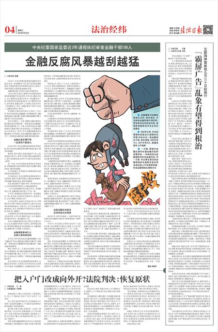 近年来,党中央坚决惩治金融领域腐败,从将“金融信贷”列为反腐败重点领域和关键环节,到强调“一体推进惩治金融腐败和防控金融风险”,金融反腐向纵深推进。