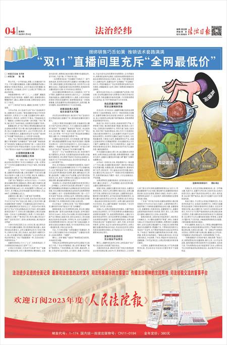 然而,“双11”期间的直播带货真的特别划算吗?主播们不断强调的“全网最低价”“破价直播”“跌破地板价”有依据吗?直播活动中提到的“前××名购买享好礼”的承诺可信吗?带着这些疑问,《法治日报》记者对“双11”期间各大电商平台的直播带货现象展开了调查。
