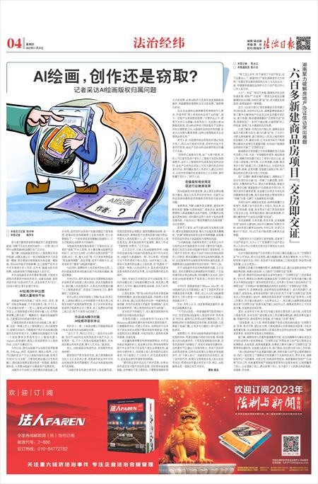 对于AI绘画中存在的种种版权问题,王正志建议,及时完善现有法律制度的有关规定,广泛宣传著作权法等法律法规,同时凝聚行业共识,及时形成AI绘画领域关于版权的工作指引和行业规范。