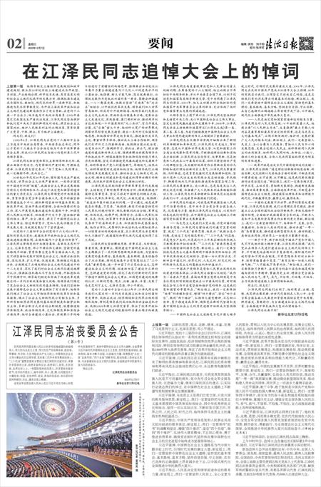 江泽民同志追悼大会在北京人民大会堂隆重举行