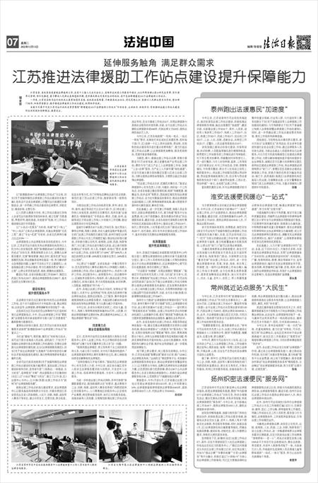 江苏推进法律援助工作站点建设提升保障能力