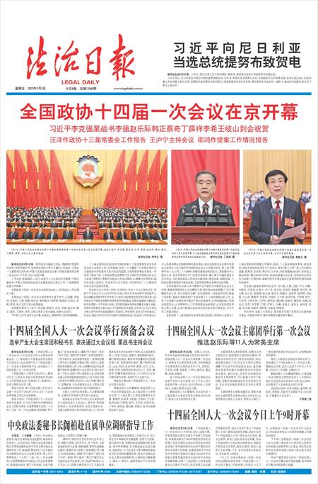 3月4日,中国人民政治协商会议第十四届全国委员会第一次会议在北京人民大会堂开幕。王沪宁主持开幕会。