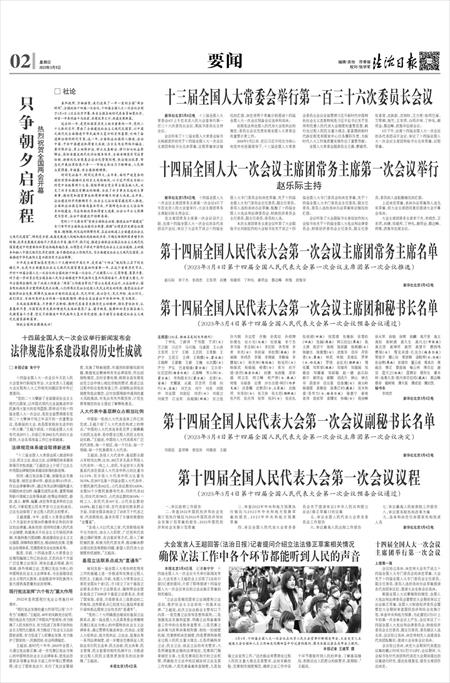 第十四届全国人民代表大会第一次会议主席团和秘书长名单