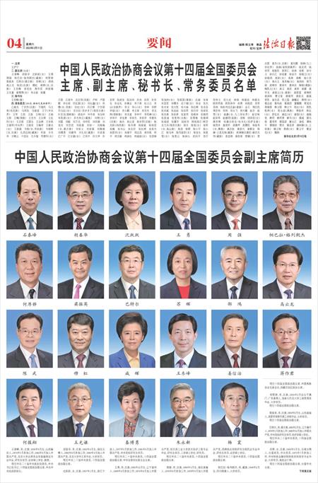 中国人民政治协商会议第十四届全国委员会副主席简历