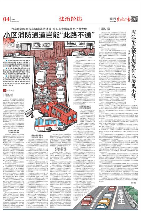 ● 小区的消防安全和每个人都息息相关,灭火是消防救援人员义不容辞的职责,但火灾的防范每个人都有责任。相较于占用消防通道带来的严重后果,现行法律处罚较轻,难以起到约束作用。同时,相关法律责任有待进一步厘清