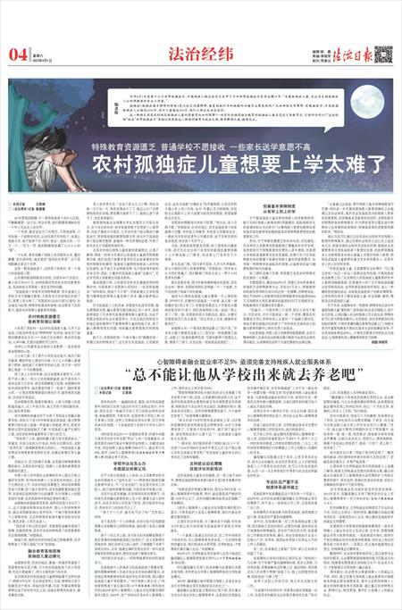 “家长在孩子8岁时想的是进普校上学,14岁想的是继续在普校待着还是去特殊学校,16岁义务教育结束了,又想找个职校待3年,真正到了就业年龄,却发现他还是什么都不会。”一位孤独症儿童的家长如是说。