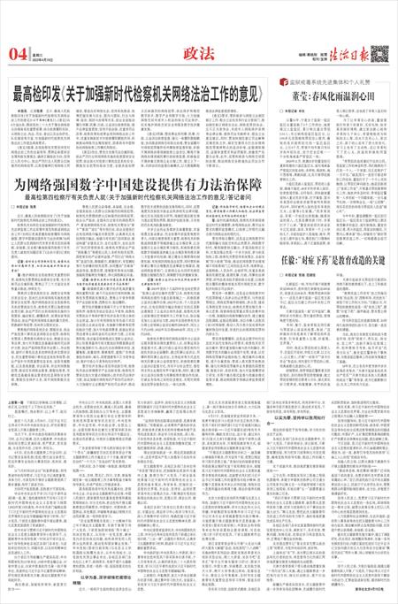 最高检印发《关于加强新时代检察机关网络法治工作的意见》