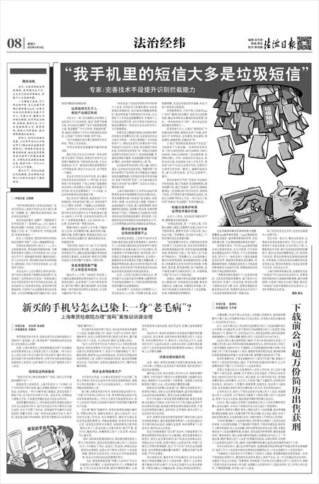 “治理垃圾短信,是一个系统工程。不仅要从制度上规范,还需要产业链上的各个环节群防群治,需要有关部门齐抓共管,加大执法力度。”李俊慧说,在这条产业链上,不容忽视的是信息泄露问题。