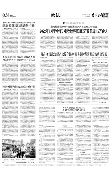 2022年1月至今年3月起诉侵犯知识产权犯罪1.5万余人