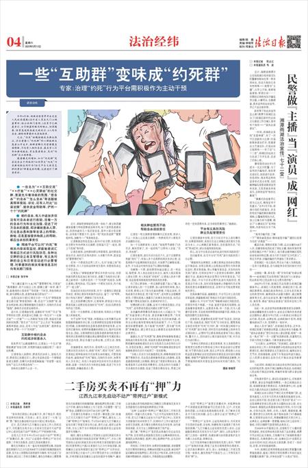 “根据相关法律规定,从事互联网业务的单位要依法开展活动,发现互联网上出现违法犯罪行为和有害信息时,要采取措施,停止传输有害信息,并及时向有关部门报告。任何单位和个人在使用互联网时,都要遵纪守法,抵制各种违法犯罪行为和有害信息。”闫超说,因此,平台不仅有必要对此进行风险防范,更是其应尽的义务,及时采取措施停止传输相约自杀等类似危害生命健康权的信息,否则平台可能也要承担相关责任。