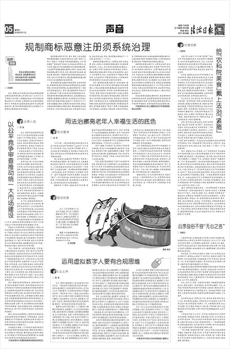 其次,规制商标恶意注册行为,应标本兼治、惩戒与引导兼顾。有关方面不仅要严格执行相关法律规定,以高压态势整治商标恶意注册,依法驳回申请或主动无效注册商标,对申请人和代理机构依法给予处罚,更要从源头引导商标申请人正确认识商标的功能和价值,树立诚实信用的基本理念。商标的功能在于区别商品或服务的来源,其价值在于商标的商誉,并非商标标志本身,其商誉是需要通过经营者的精心经营、诚信竞争才能积累获得,并非商标标志所固有,更不能靠“搭便车”“傍名人”获得。只有通过惩戒与引导相结合,标本兼治、系统治理,才能引导市场主体、代理机构和社会公众积极抵制商标恶意注册行为,才能让商标申请行为持续回归理性,从而形成诚信注册、强化使用、严格保护的良好商标注册生态。