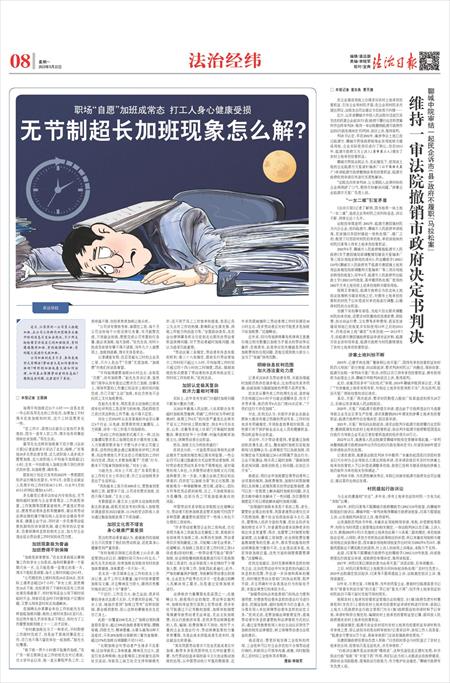 “治理超时加班本身是个系统工程。首先,需要社会观念的变革,我国普通劳动者往往并不拒绝加班,整个社会也很崇尚奋斗文化;其次,需要纳入经济方面的考量,在社会经济发展的特定水平下,对普通劳动者来说挣更多的钱比休息更重要;再次,也需要工时制度的配套制度,比如最低工资制度、社会保险费征缴基数制度等的完善。此外,落实劳动基准的劳动保障监察力量的不足、企业违法成本低,也在导致加班泛滥,这些方面的制度都需要调整。”沈建峰说。