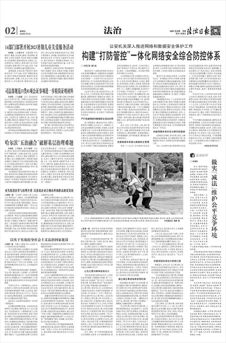《法治日报》记者从新闻发布会上获悉,近年来,公安部党委以保护关键信息基础设施、重要网络和大数据安全为重点,深化落实网络安全等级保护制度、关键信息基础设施安全保护制度和数据安全保护制度,全面加强网络安全防范管理、监测预警、信息通报、应急处置和侦查打击等各项措施,积极构建“打防管控”一体化的网络安全综合防控体系,有力维护了我国网络空间安全。