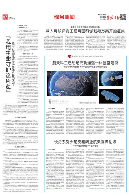 7月13日,在第九届中国(国际)商业航天高峰论坛上,中国航天科工集团空间工程总体部宣布,正式启动超低轨通遥一体星座建设。