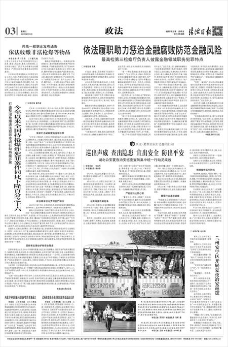 今年以来全国持枪爆炸犯罪案件同比下降百分之十六