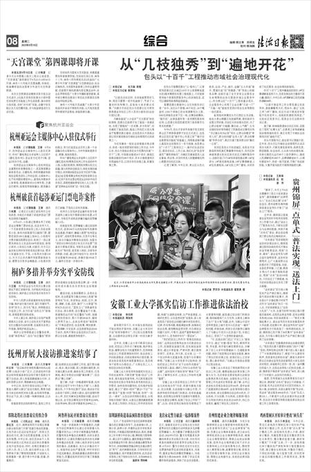 “市、区政法部门还以‘平安工大’建设为平台,通过‘对接+服务’形式,做到早发现、早处置,将矛盾化解在萌芽状态,并解决了安工大多年的围墙缺口、交通隐患等问题,消除了校园周边环境安全隐患,解决了师生们的后顾之忧,使他们安心立足学校,潜心教学科研。”马鞍山市委政法委副书记程全胜说。