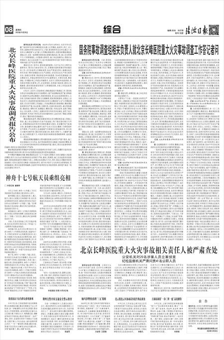 北京长峰医院重大火灾事故调查报告公布