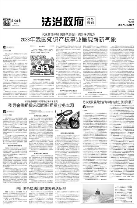据申长雨介绍,2023年,我国知识产权立法取得显著进展。立法进程明显加快,完成专利法实施细则修改,商标法修改列入全国人大常委会立法规划,发布《数据知识产权地方试点工作指引》,开展《集成电路布图设计保护条例》修改研究,完成《地理标志产品保护办法》和《集体商标、证明商标注册和管理规定》的制定;进一步完善审查政策体系,修改发布《专利审查指南》和《规范申请专利行为的规定》等部门规章;有序推进地方立法,内蒙古、重庆等地颁布实施知识产权相关条例,浙江、山东等地出台数据知识产权登记管理办法……