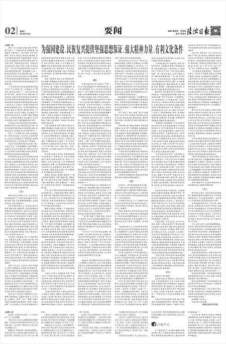 为强国建设、民族复兴提供坚强思想保证、强大精神力量、有利文化条件
