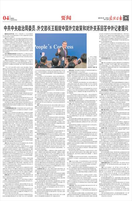 中共中央政治局委员、外交部长王毅就中国外交政策和对外关系回答中外记者提问