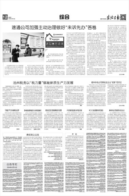 沧州税务以“税力量”赋能新质生产力发展