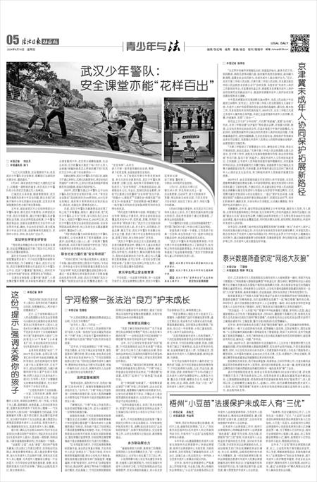 “我们和武汉警方共同探索武汉少年警队建设模式,让安全教育有了更丰富载体,安全意识、法治观念入脑入心,进一步拓展了警教联动机制,共同开展平安校园守护行动。”武汉市教育局安全管理处相关负责人说。