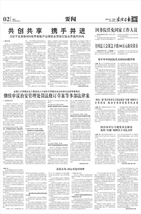 全国人大常委会法工委发言人介绍本月常委会会议拟审议法律草案情况