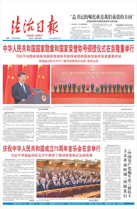 9月29日,中华人民共和国国家勋章和国家荣誉称号颁授仪式在北京人民大会堂金色大厅隆重举行。习近平等领导同志同国家勋章和国家荣誉称号获得者合影留念。