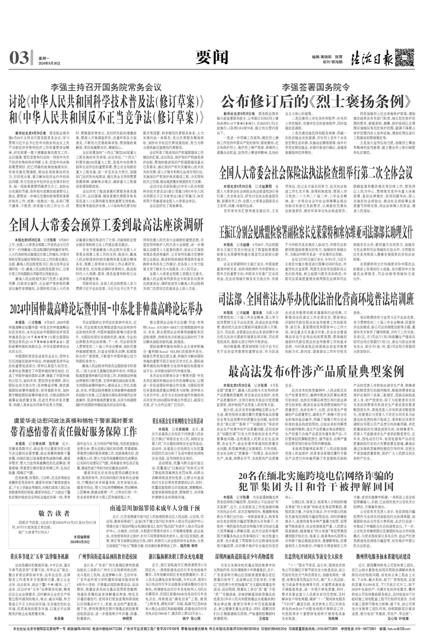 讨论《中华人民共和国科学技术普及法(修订草案)》 和《中华人民共和国反不正当竞争法(修订草案)》 (2024年09月30日) |