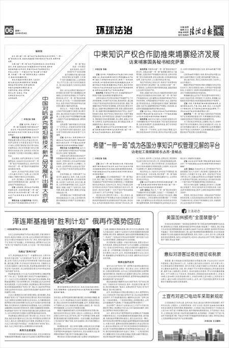 希望“一带一路”成为各国分享知识产权管理见解的平台