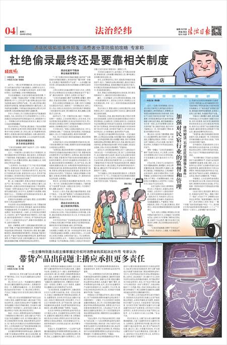 受访专家认为,无论民宿还是酒店,其经营和管理人员都应该认识到,不能总指望顾客去发现问题、去维权。酒店经营者应积极承担自身义务,针对性地去防范偷拍事件发生。