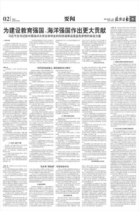 为建设教育强国、海洋强国作出更大贡献